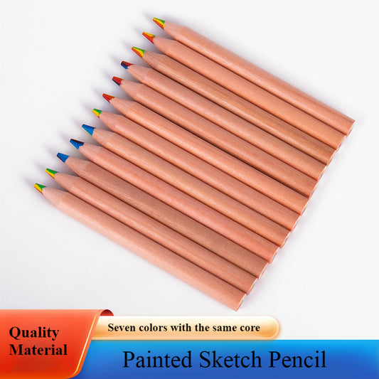 12pcs Rainbow Colored Sketch Pencils, 7 Vibrant Shades in One Core, Short Artistic Drawing Pencils for Art & Crafts, 3.3mm Lead, 8.8cm Length, Wooden Material, Artistic Sketching | Vibrant Color Blend | Durable Wooden Body, Colored Pencils