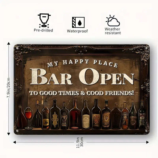 1pc Retro Metal Aluminum Sign My Happy Place Bar Open Tin Sign Wall Art Decor Vintage Garage Wall Decor Restaurant Decoration Cafe Bar Club Living Room Wall Decor Plaque