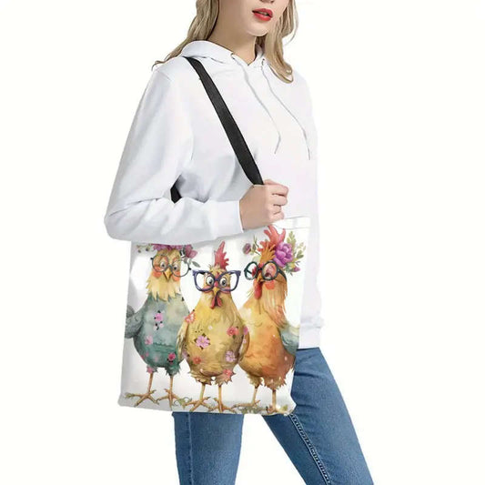 1pcs Chic Cartoon Chicken Tote Bag Lightweight Unique Animal Print Fashion Shoulder Bag Reusable Grocery