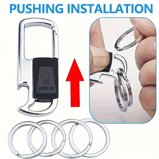 1pcs Men's Stainless Steel Car Keychain with 4 Removable Rings and Bottle Opener, Stylish Black Business Style