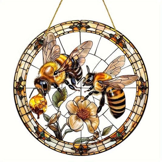 1pc 2D Flat 8" Acrylic Bee and Flowers Stained Glass Style Sun Catcher Vibrant Wall Hanging D