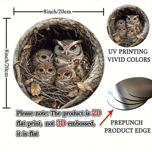 1pc 3D Owl Family Metal Sign 30cm x 20cm Pre-Drilled Aluminum Wall Art