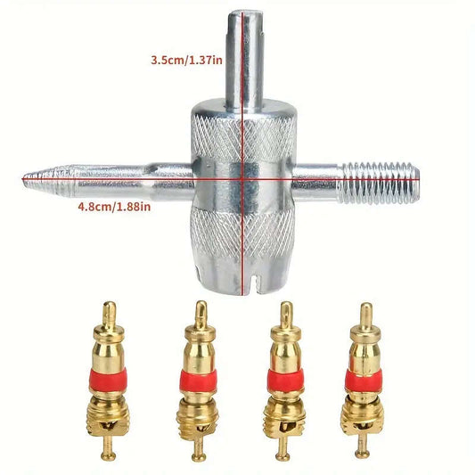 5pcs set Universal Tire Valve Repair Tool Set with 4 Copper Valve Cores Durable