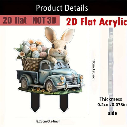 1pc 2D Flat acrylic charming bunny and retro truck garden piles Easter themed outdoor
