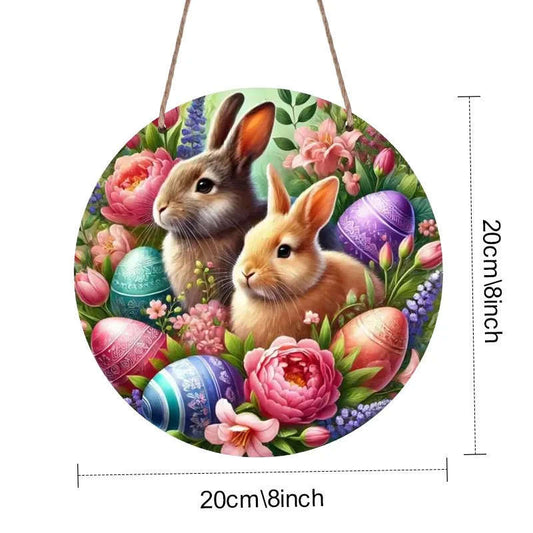 1pc Easter Bunny Eggs Wooden Sign 19.81cm Round Perfect for Indoor Outdoor Decor Wreath Accent Ideal for Home Bar Garage Cafe and Garden
