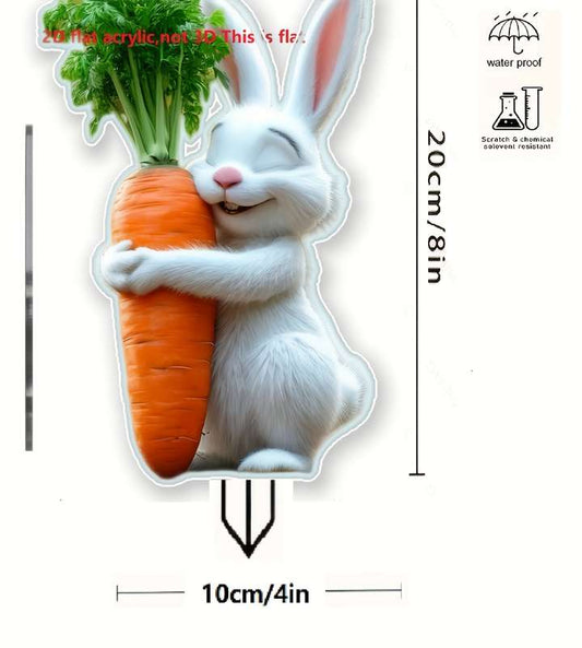 1pc 2D Flat Adorable Rabbit with Carrot Garden Stake Acrylic Perfect Easter Gift for Outdoo