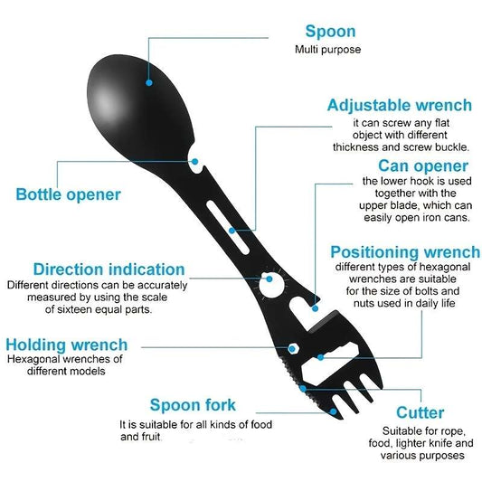 1pc Compact 10-in-1 Stainless Steel Multi-Tool Spork
