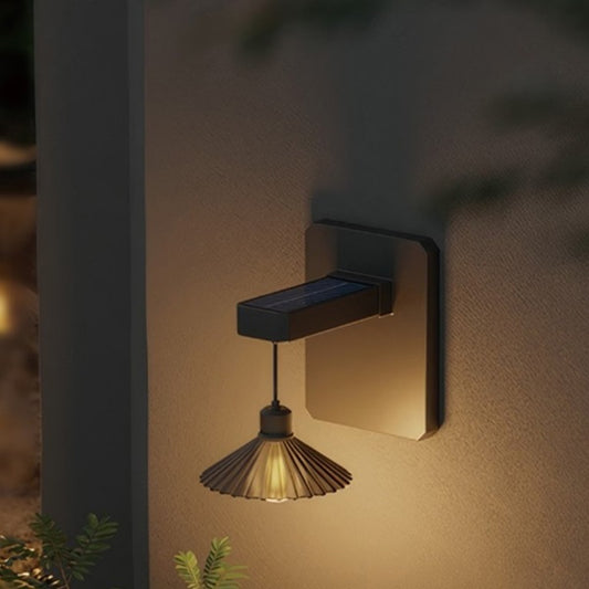 PM-153 Modern Solar-Powered Wall Light With Elegant Pleated Lampshade