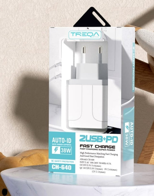 Treqa CH-640 2USB +PD 38W Fast Charger With V8 Cable
