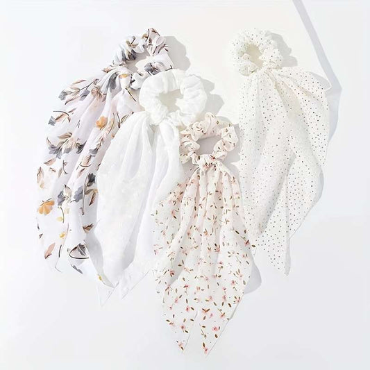 Sold out4pcs Cute Floral Ribbon Hair Ties
