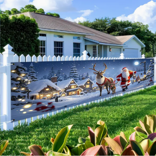 Christmas and New Year Polyester Banner 1 Pack (17 x 78 Inch) - Outdoor Santa Claus and Reindeer Moonlight Scene Hanging Flag, Decorative Entry Garden Banner for Holiday Celebrations,