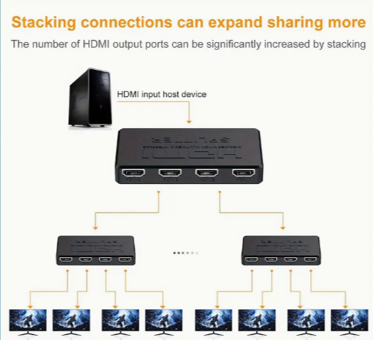 1pc 4K HDTV Splitter 1 In 4 Out, 4K HDTV Screen Splitter Switcher 1 Female to 2 Female 1080P Audio Video Output for TV, Monitor, Projector, Laptop, Computer