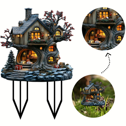 Charming Christmas Fairytale Acrylic Tree House Sculpture - Perfect garden and lawn decoration, ideal holiday party accessory and gift for good friends or new home