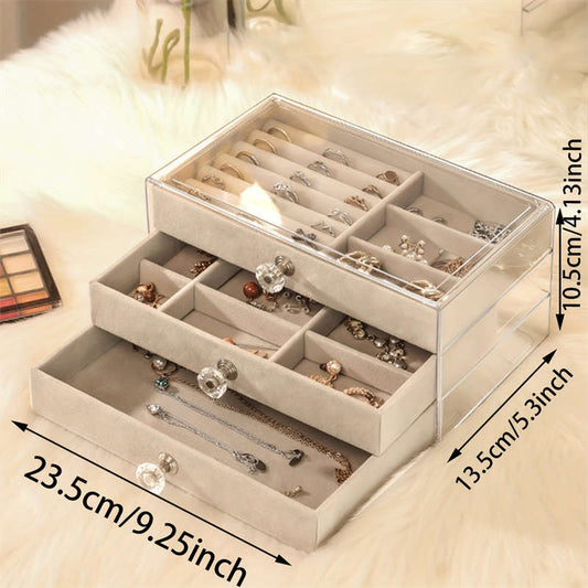 Multi-Layer Drawer Acrylic Jewelry Storage Box With Adjustable Velvet Tray