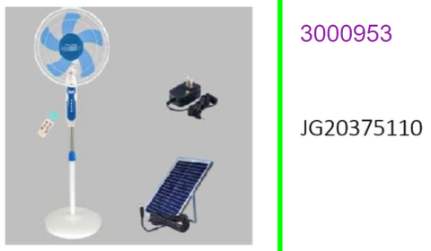16 Inch Remote Controlled Solar Floor Standing Fan with Digital Display 20W. Solar Panel 12W 15V