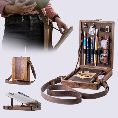 Writer Wooden Messenger Box Multipurpose Artist Tool and Brush Storage Box