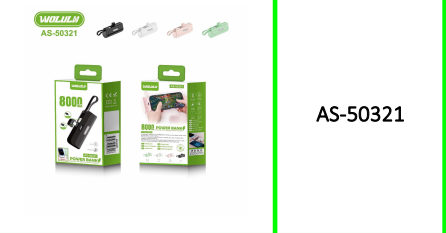 Wolulu 8000Mah Mini Power Bank. Type C, Lightning & V8 Pins