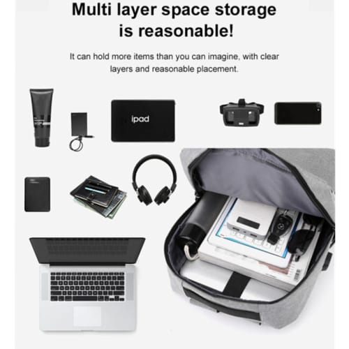 XF0767 15` Laptop Backpack with External Charging USB Port + 2 Small Bags