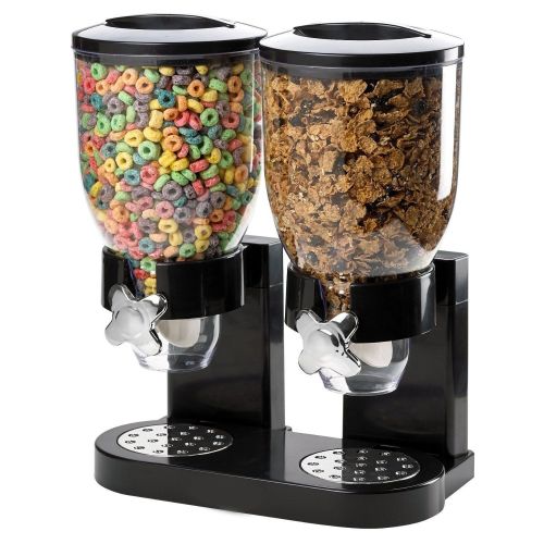 Double Cereal Dispenser Dry Food Storage Container Dispenser Machine (White/Black)