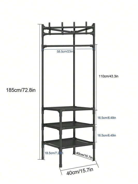 Coat Rack with Shelf Vintage Corner Hall Tree with 2 Shelves Entrance Coat Hanger with 1 Cross Bar Entryway Shelf for Storage Shoes