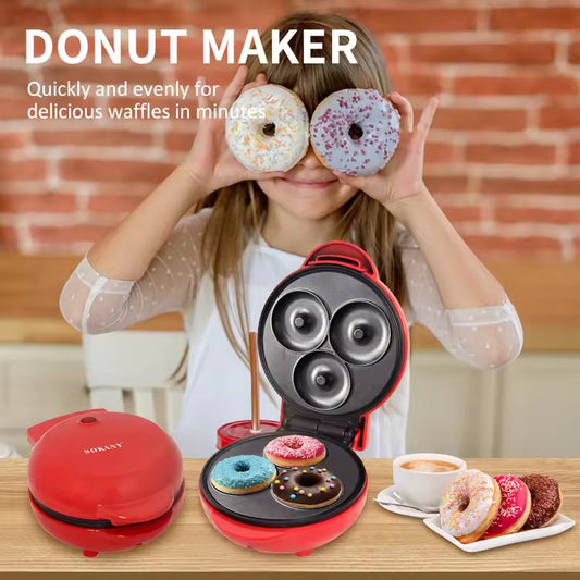 3 Holes Mini Doughnuts Donut Maker Machine for Kid-Friendly Breakfast Cake Pop Waffle Makers for Kids