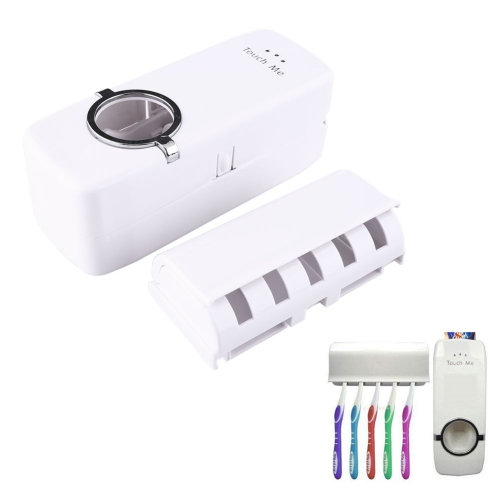 Automatic Toothpaste Dispenser + 5 Toothbrush Holder Wall Mount Stand Rack