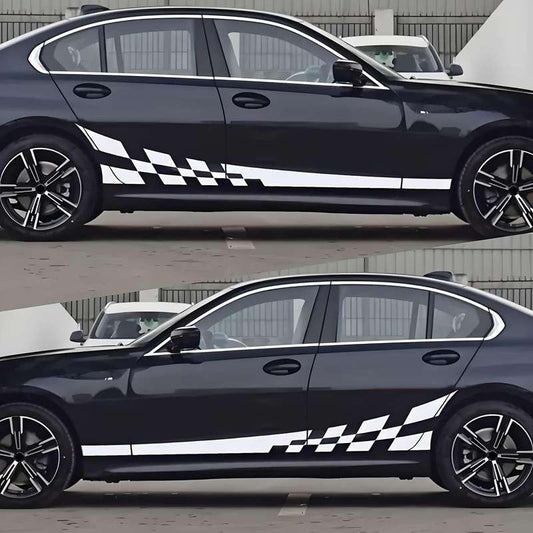 Set of Two Glossy Checkered Flag Racing Decals - Self Adhesive