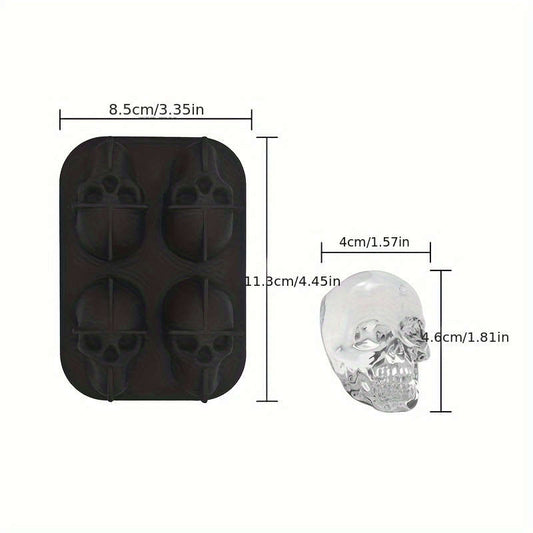 1pc Skull-Shaped Silicone Ice Cube Tray 4-Cavity