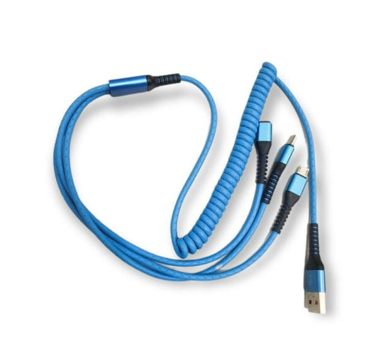 1.5M USB Type C Lightning Micro 3 in 1 Charging Coiled Spring Cable 3A