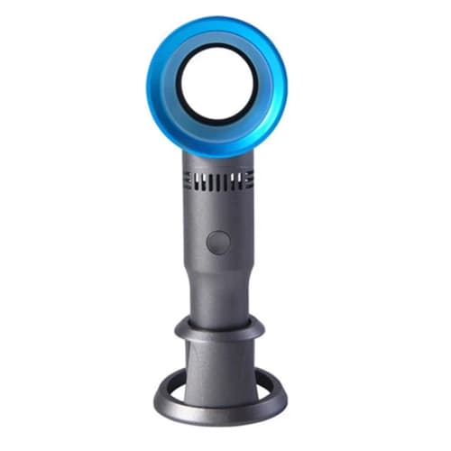 Portable Handheld Leafless Fan Manual Button Battery Three Wind Speeds Detachable Base Summer Cool D