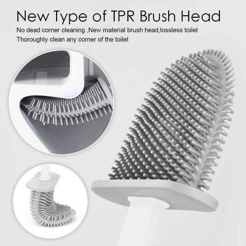 Bathroom Cleaning Soft Silicone Flat Head Wall-mounted Quick Drying Toilet Brush