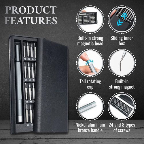 24 in 1 Magnetic Precision Screwdriver Set Electronics Eyeglass & Watch Repair Tool Kit