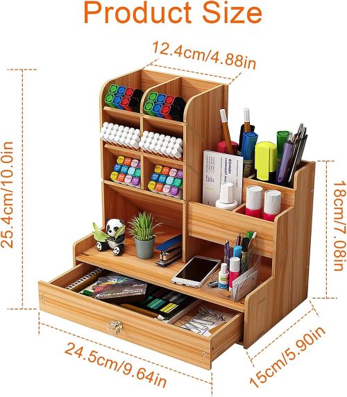 Wooden Desk Organiser DIY Desktop Tidy Pen Holder Large Capacity Stationery Storage Box