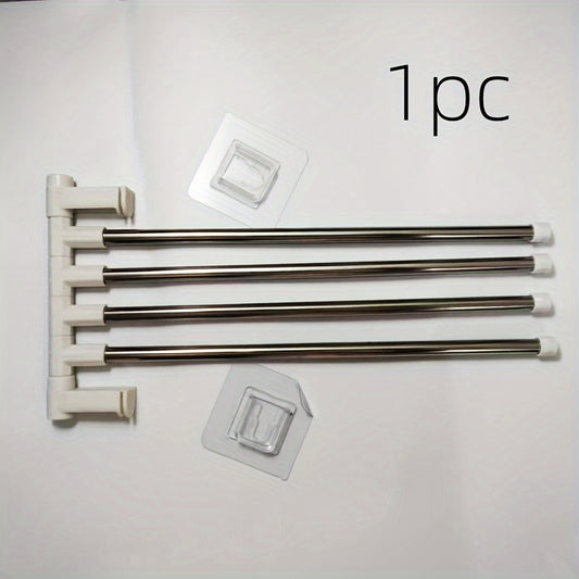 Wall-mounted towel rack with swivel rod, multi-layer hanging rod towel storage rack, unscented, no power required, battery-free bathroom accessories for towel organization and storage
