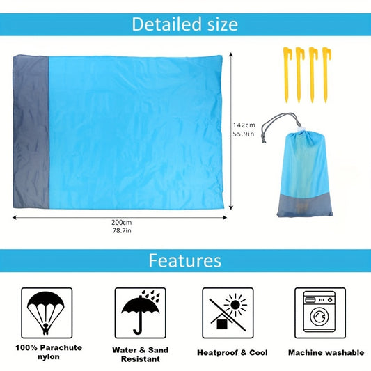 Extra Durable Waterproof Beach Mat - Sand and Moisture Resistant, Easy Clean Polyester Blend, 55" x 80" / Includes Stakes and Carabiners, Great for Camping, Picnics and Outdoor Adventures Blue / 140.0*200.0cm