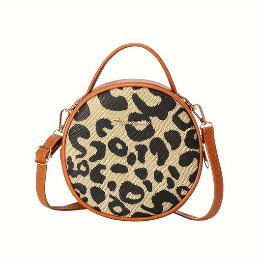 1pcs Girls Vintage Leopard Print Small Round Bag, Cute Small Fashion Handbag, Zipper Casual Shoulder Bag