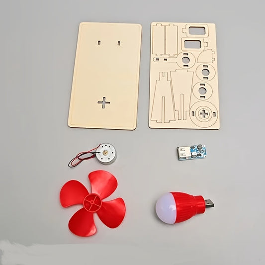 1 Wind Power Model - Steam Experiment Kit with fan blades, current and glowing bulb for fun physics experiments