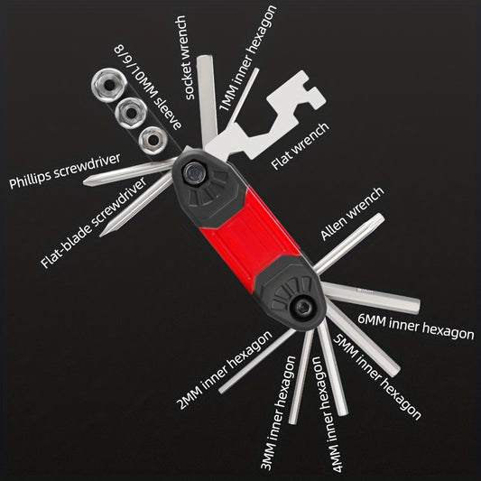 1pcs 16 in 1 Foldable Stainless Steel Rivet Removal Professional Pliers - Multi-purpose Bicycle Repair Tools for Travel, Off-road, Racing, Mountain Biking - Perfect Valentine's Day Gift for Men and Bicycle Lovers