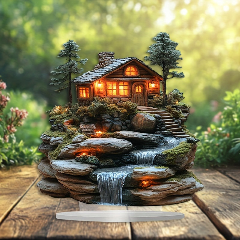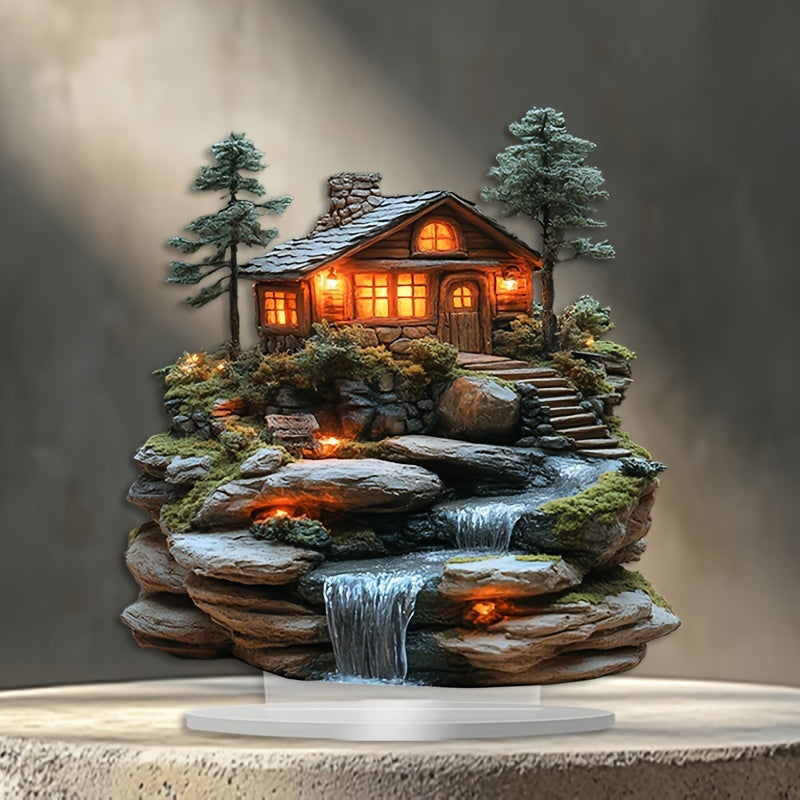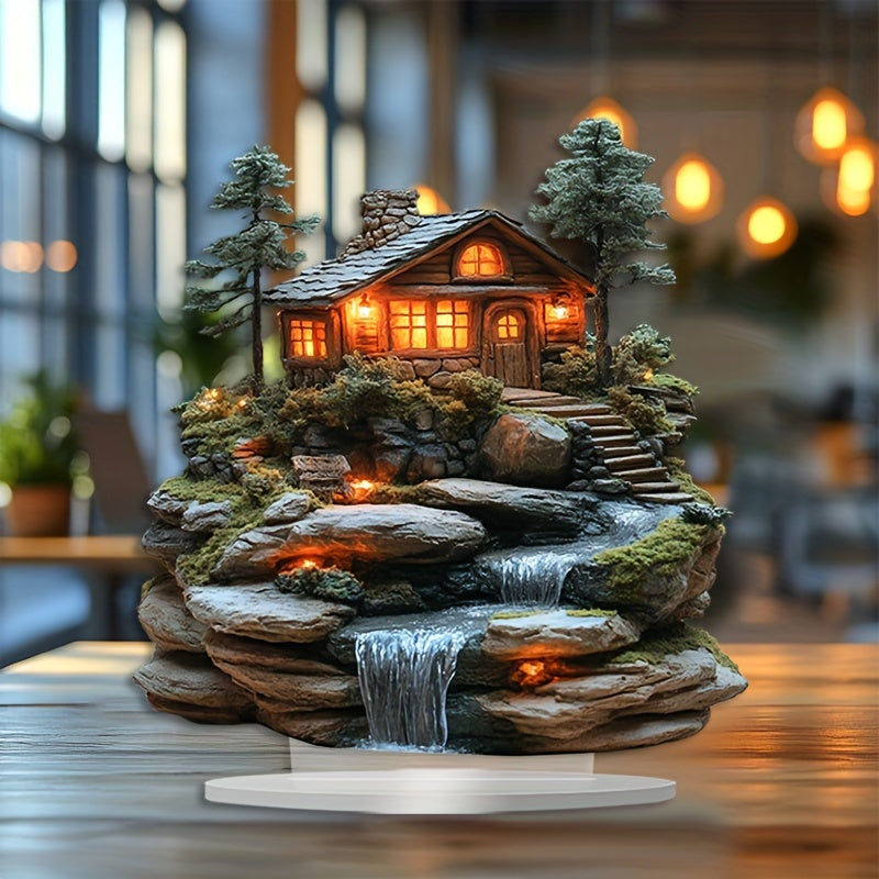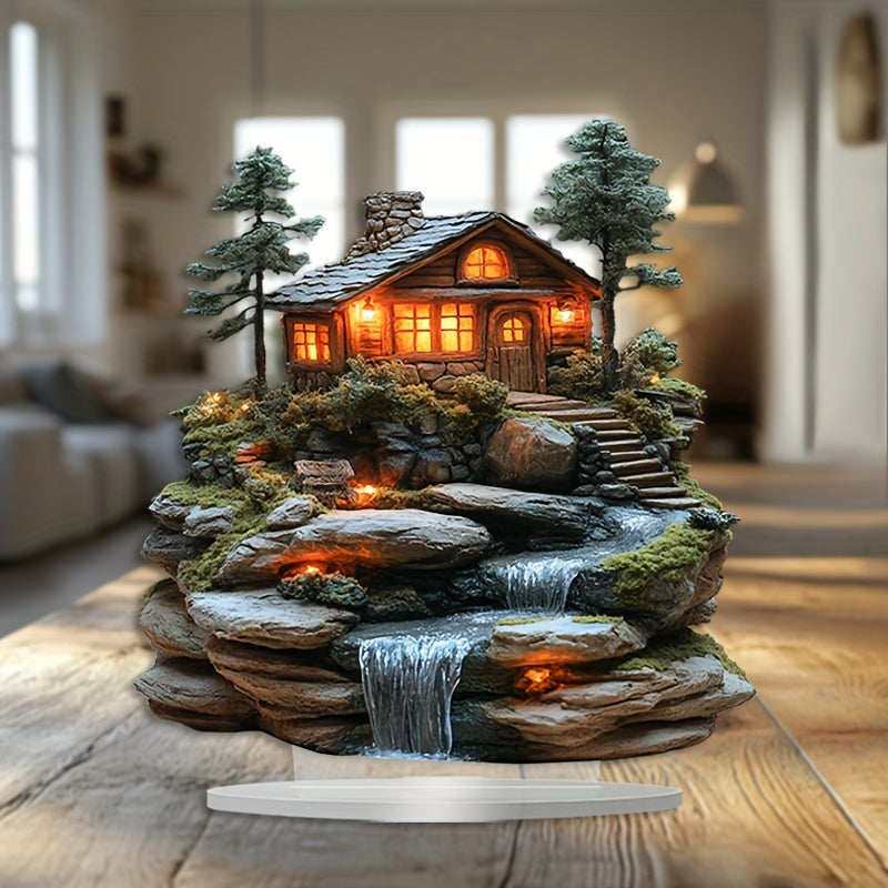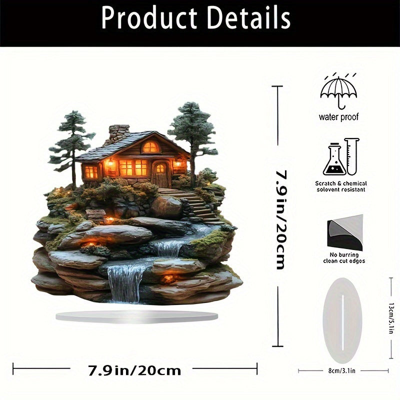 1 Bohemian Acrylic Mountain Cabin Decorative Sign with Waterfall - Desktop Display for Home and Office, Multi-Purpose Bohemian Decorative Plaque, Ideal Gift for All Occasions - No Text, Set of 1