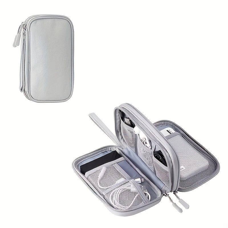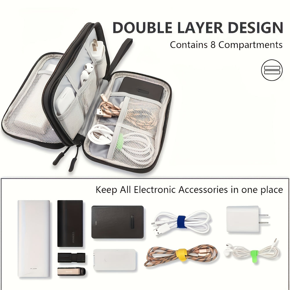 1 Dual Layer Electronic Accessories Organizer with 8 Compartments Waterproof Travel Organizer for Chargers, Cables, Headphones, USB Drives - Durable Fabric, Hand Washable/Dry Cleanable