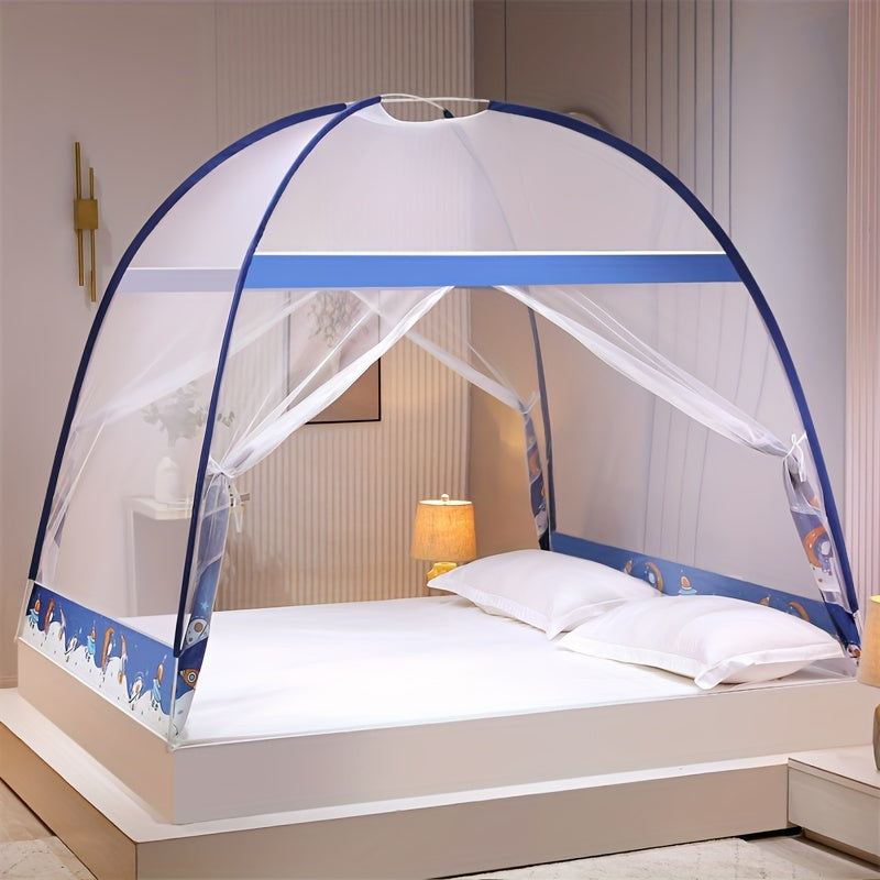 1 piece pop-up cartoon yurt bed cover - 360° all-round mosquito net, quick installation, no installation required, dustproof, large space, summer bedroom bedding home fashion decoration, easy to assemble, portable, space saving