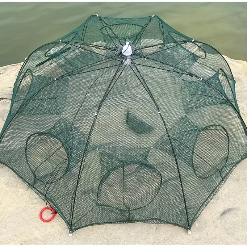 1-Piece Portable Umbrella-Shaped Multi-Hole Nylon Lobster Cage Fishing Net - Durable, Foldable, Lightweight Fishing Gear for Easy Catch and Release - Great for Saltwater and Freshwater Fishing 8 Holes