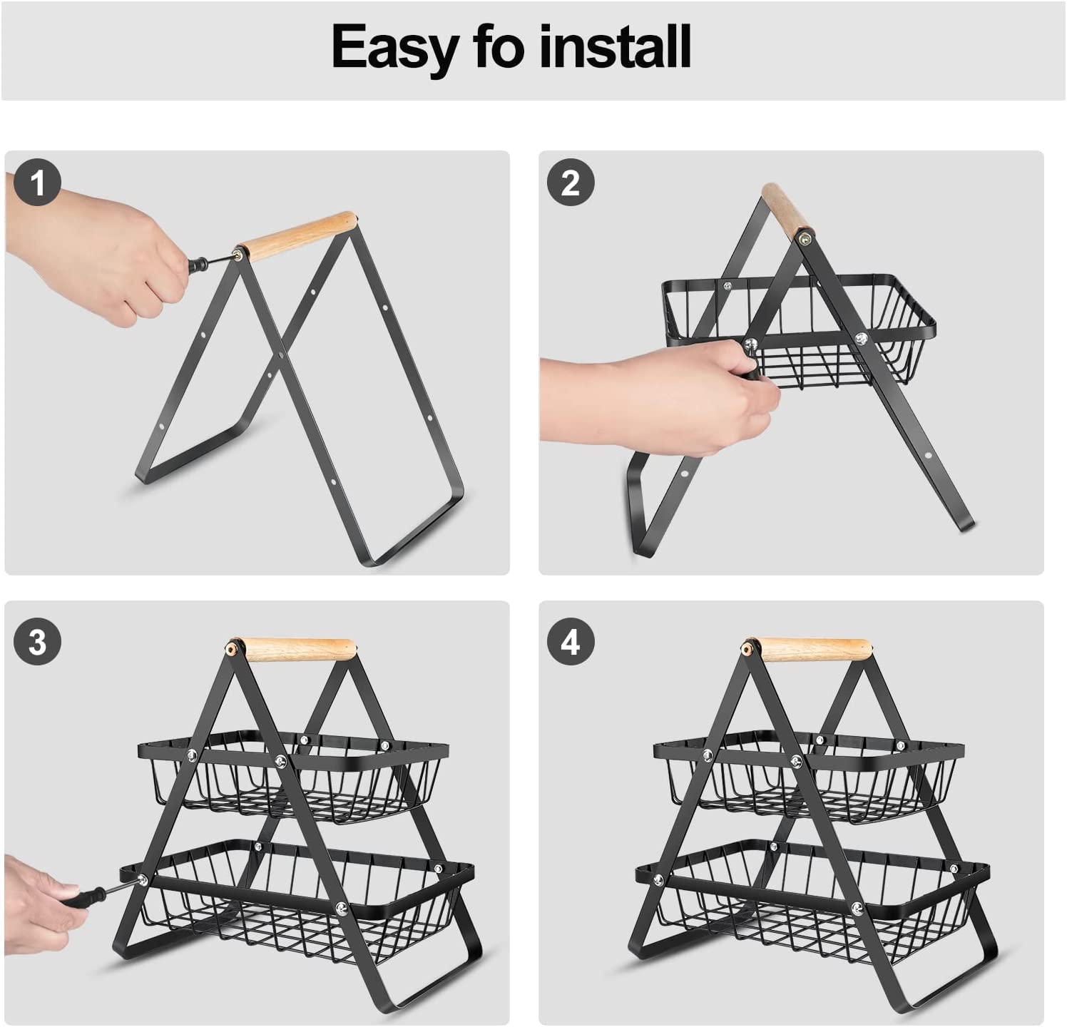 Home Metal Serving Fruit Bowl 2 levels -Black