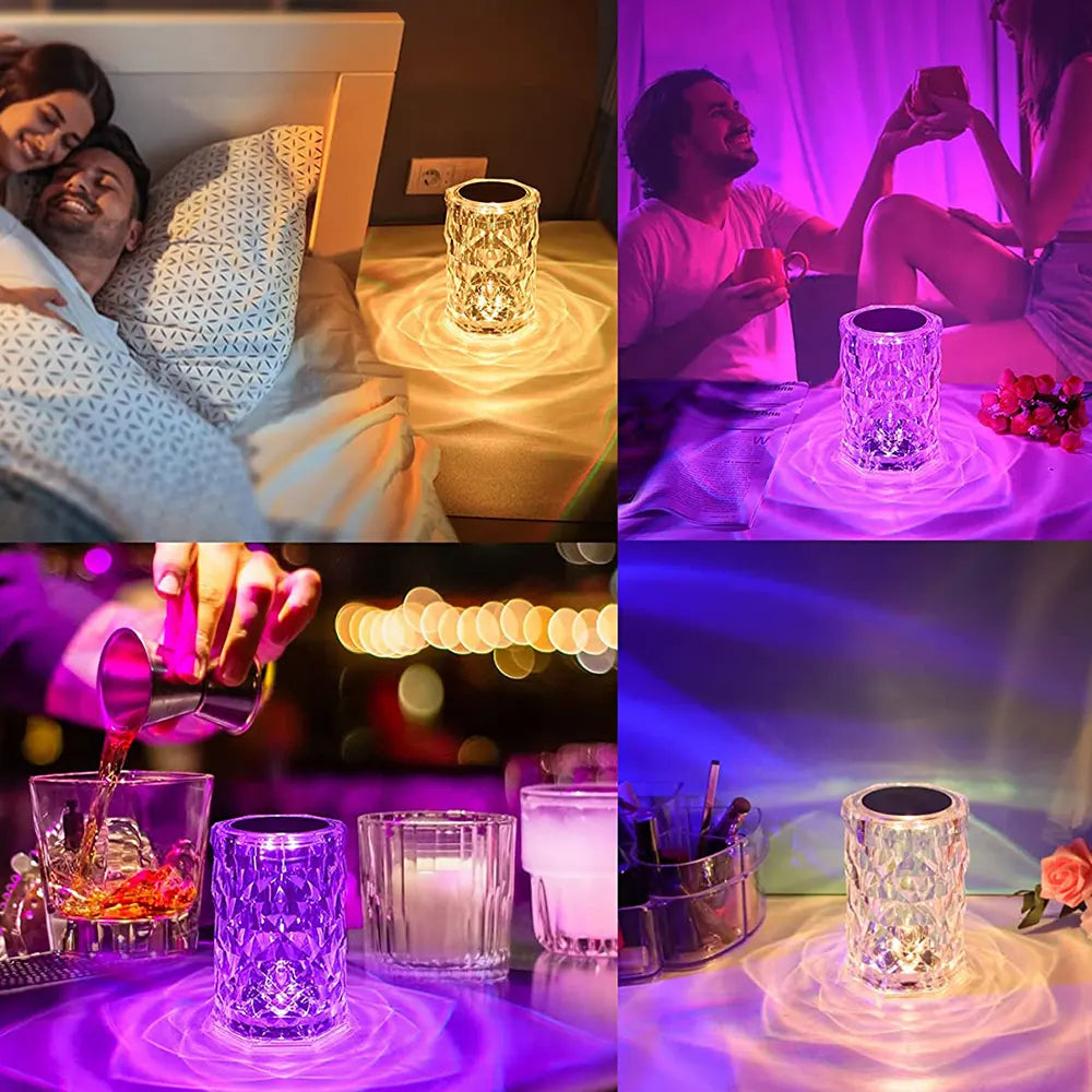 Cylindrical Crystal Table Lamp USB charge LED Ambient desk night lamp touch control 16 colors Atmosphere Rose LED Crystal lamp