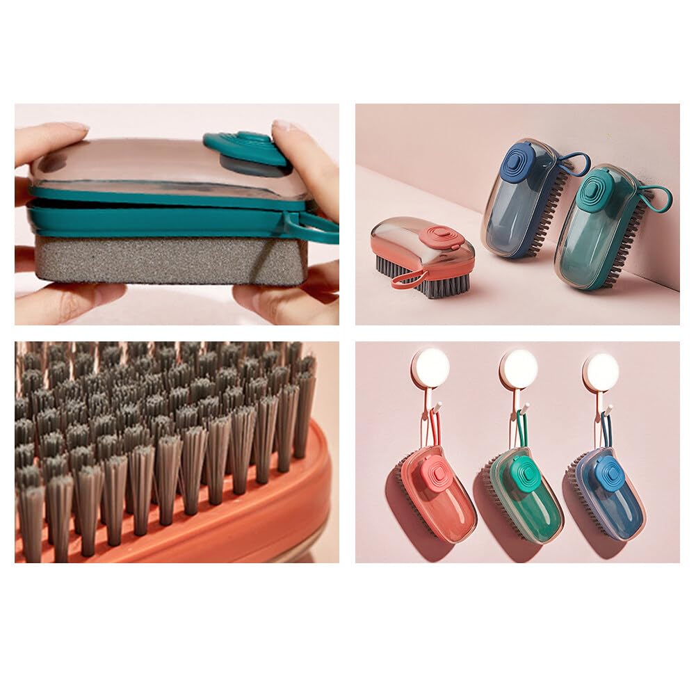 Home Multi Hydraulic Cleaning Brush, 3 in 1 Automatic Liquid Addition Soft Bristle Laundry Brush with 2 Replacement Brushes for Laundry Shoes Dish Sink Pan