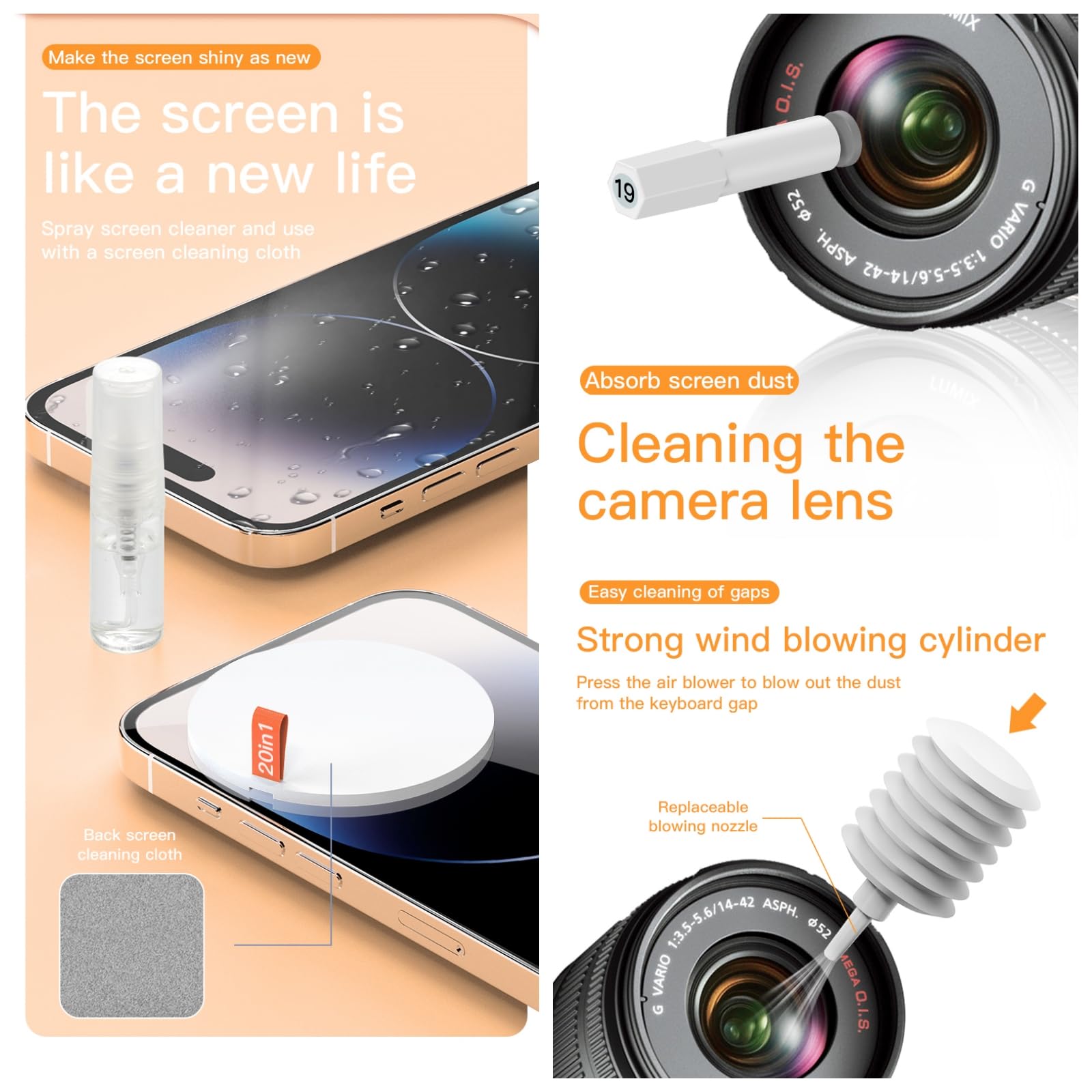 Keyboard Cleaner Kit, 20-in-1 Laptop Phone Screen Cleaning Kit, Keyboard Cleaning Kit with Electronic Cleaning Brush Spray for Airpods Pro, iPad, iPhone Pro, Camera, Computer Cleaning