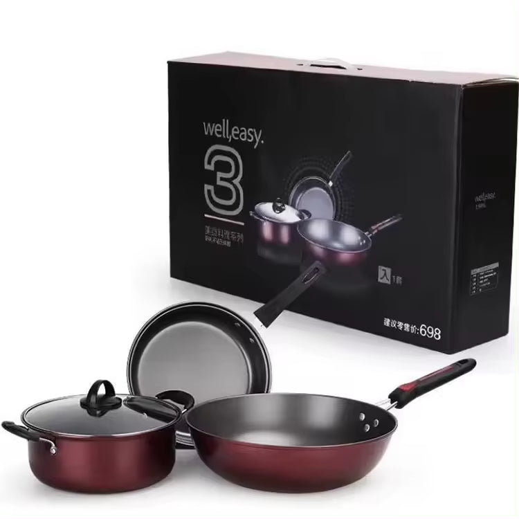 Fine iron 3 piece set pots and pans non-stick cookware set cooking nonstick cookware sets