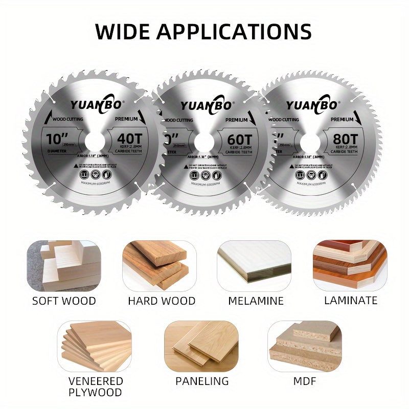 - This type of saw blade is suitable for cutting all softwoods, hardwoods, particleboards or plywood.