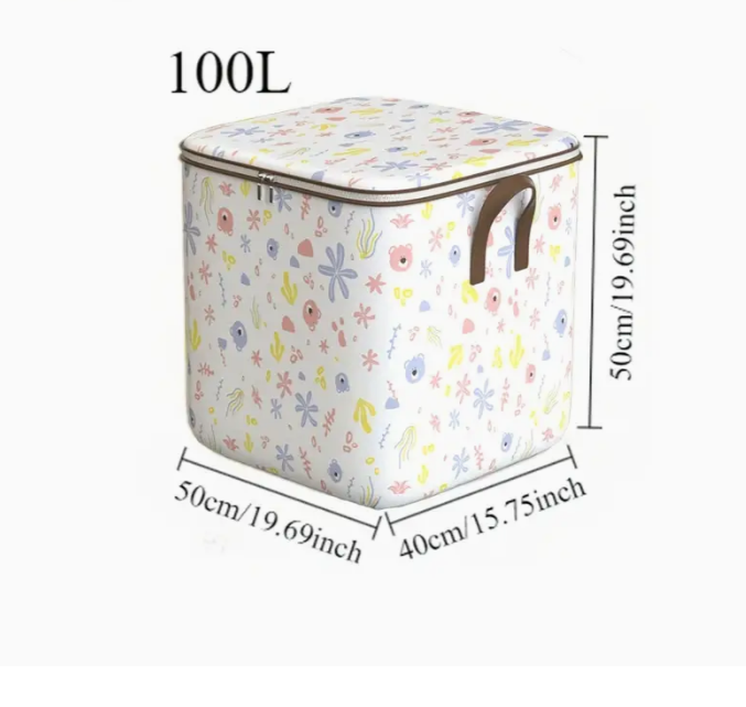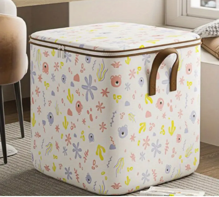1pc Foldable Fabric Storage Bag with Cover, Casual PVC Material, Printed Design, Multifunctional Wardrobe Storage Bag, Dust-proof Clothes and Toys Container, Zipper Closure, Suitable for Going Out, Not Waterproof
