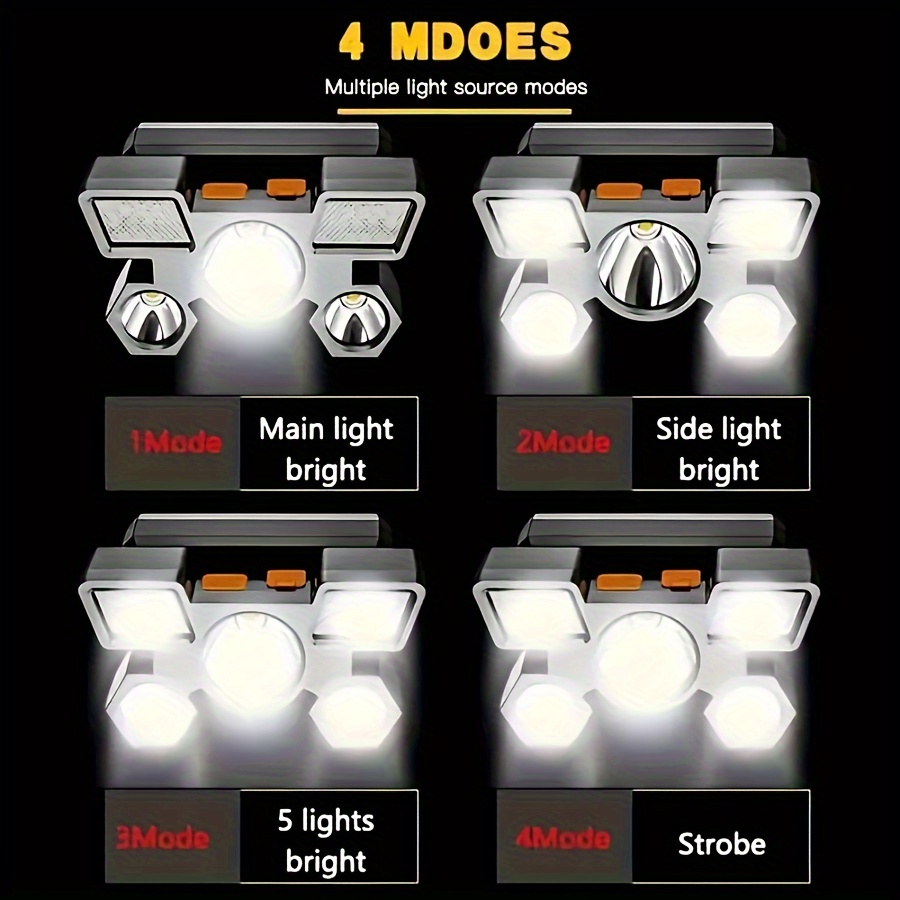 1pc Headlamp with Built In Battery USB Rechargeable Home Decoration Hardware Tools 4 Modes Portable Head Flashlight Lightweight 5 LED Headlight Outdoor Camping Fishing Lantern Mining Headlamp